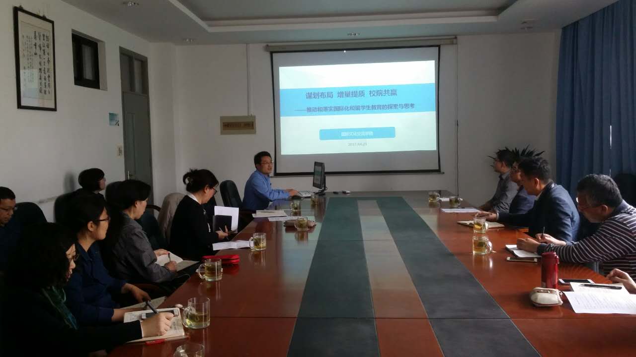 4月21日,食品学院组织召开人才培养国际化专题讨论会,邀请国际外事处、国际文化交流学院和教务处相关职能到会指导工作。会议由副院长金银哲主持,学院领导、各专业负责人及游学带队教师参加了交流。