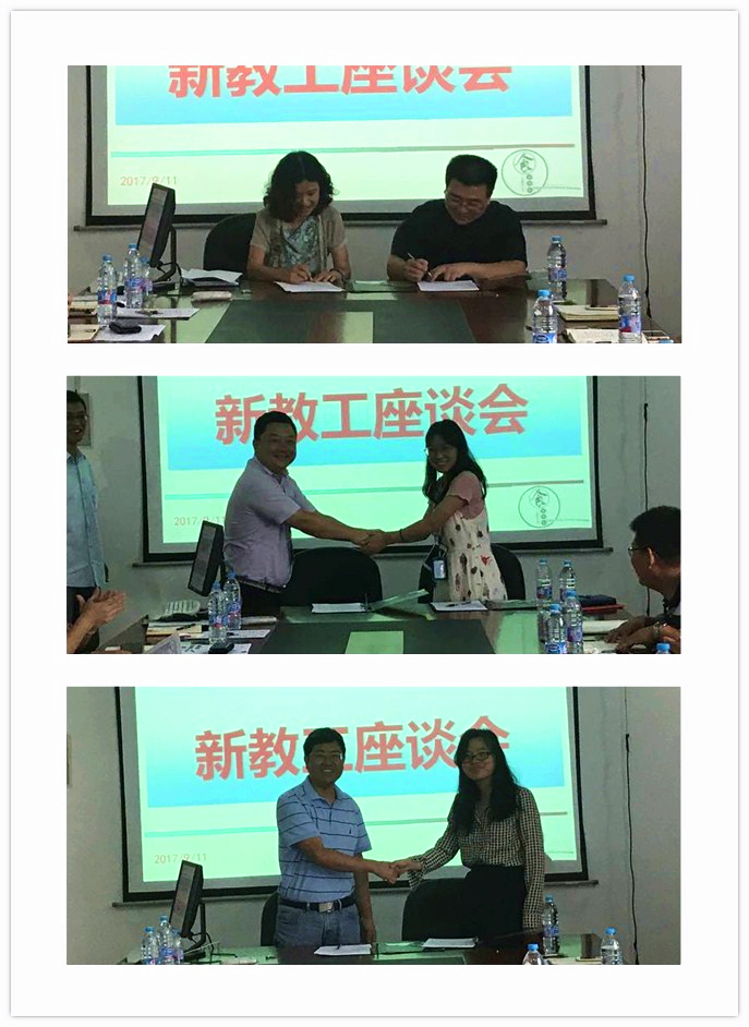 在随后的交流发言中,2017年新进的10名教工分别做了自我介绍并对自己主要经历、个人发展规划等做了简要的陈述,大家纷纷表示要尽快适应新环境,熟悉学情,认真工作,多求教,多交流。而带教老师们则分享了多年从事教育、教学工作的经验、心得。