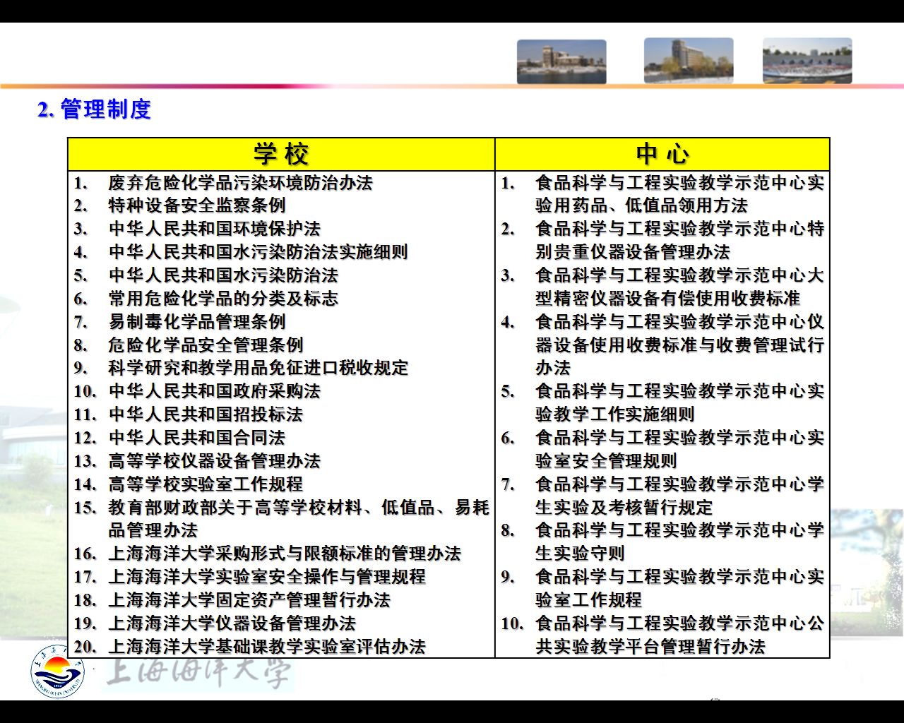 早在1912年学校办学之初,伴随着水产制造专业的教学需要,建立了水产基础实验室。1952年高校院系调整以后,我校作为水产类本科院校之一,对学科、专业进行了调整,完善了水产教学内容,形成了支撑水产食品专业的基本实验室构架,分属于加工系相关教研室管理,主要为水产专业教学服务,兼顾生物类专业教学需求。1986年学校在学科、专业的进一步拓展和增加的形势下,获得世界银行贷款“高等教育发展”项目的支持,加强了对实验室设备的更新及整体运行模式的探索,形成食品工艺学系列实验室,并新建了食品工程大楼,组建了食品科学与工程实验教学中心。