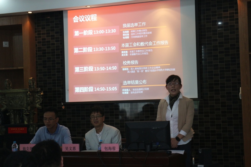 10月23日院党委书记陈慧牵头召开院第八届双代会代表第一次全体会议,选举产生校级代表13名和院双代会工作委员会。