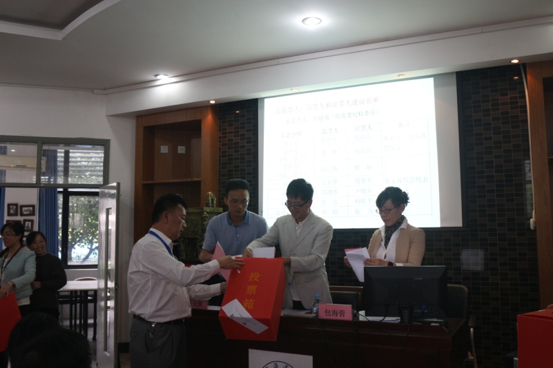 会上,分别审议通过了《Kaiyun官方网站登录入口工会委员会换届选举办法》、《Kaiyun官方网站登录入口“双代会”代表选举办法》、选举办法和总监票人、监票人名单。在总监票人包建强同志的主持下,采用等额选举办法、无记名投票方式产生我院第八届工会主席,采用差额选举办法、无记名投票方式,选举产生了我院第八届工会委员会委员6名,院“双代会”代表31名。