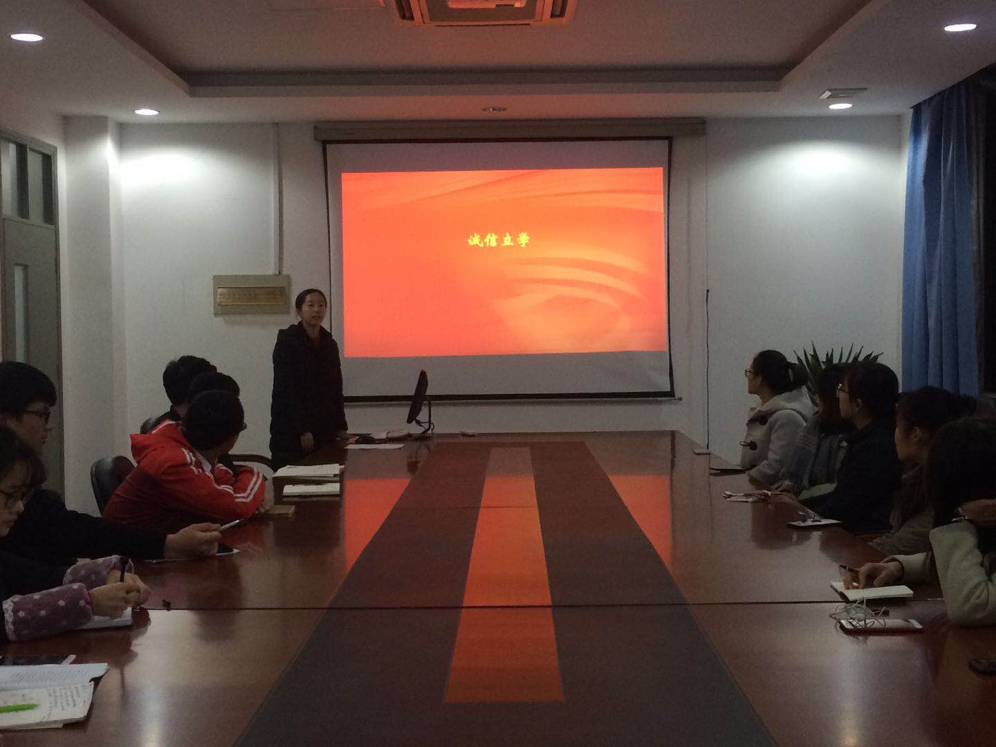 11月30日晚上6点,食品学院“科学道德与学风建设”主题班会在A209举行,班会主题为“诚信立学”。2017级党员和学生干部参加,实习辅导员盛红主持。