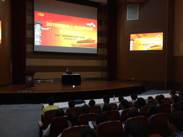 心怀理想,志存高远, 以实际行动积极向党组织靠拢——食品学院为2018级全体新生进行入党启蒙教育