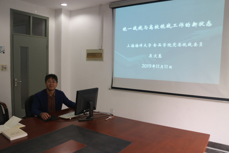 院党委统战委员吴文惠教授以《统一战线与高校统战工作的新状态》为题作了主题发言,他从统一战线的历史出发,对统一战线内涵作了详细解读,同时指出,在中国革命、建设和改革的各个历史时期,统一战线都是中国共产党的一大重要法宝。新时代高校统战工作具有重要意义,同时也面临巨大挑战,在校党委和院党委带领下,我们要团结民主党派和无党派人士,做好高校意识形态工作,维护民族团结,与有关部门及院系党组织通力合作,形成统战工作合力,把统一战线发展好、把统战工作开展好。