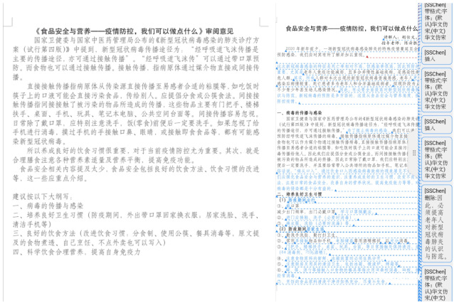 本次线上学习活动的主题围绕食品安全与营养,为确保传授知识的正确性和专业性,每一次活动前,陈老师都会对讲解同学的讲稿文件进行认真的审阅和批改,在文档中注明审阅意见或批注,并在发完批注文件后通过电话将批注的地方向学生们进行详细的解释,以便同学们能更好的理解、完善所要自学的内容。