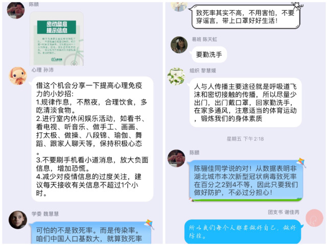 新春伊始,一场突如其来的新形冠状肺炎打乱了所有计划。在中共中央政治局常务委员会召开的关于研究加强新型冠状病毒感染的肺炎疫情防控工作会议中,习总书记强调,做好疫情的防控工作将直接关系到人民生命安全和身体健康。为响应国家和党中央号召,2018级食科1班在学院团委的指导下,积极开展线上“抗疫同心 青春同行”主题团日活动,号召同学们不忘初心担使命,守好阵地抗疫情。