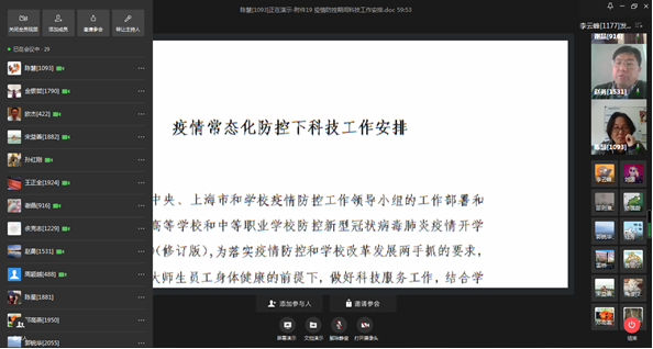 与会的教研室主任围绕教职工思想动态、在线教学工作进展情况等进行了交流,辅导员介绍了带班学生在线学习以及思想动态等情况,大家围绕共性问题进行了讨论,并以问题为导向,梳理了近期需重点推进的工作,并将通过院级FD中心的平台开展经验分享、研讨,以顺利推进本学期的各项工作。