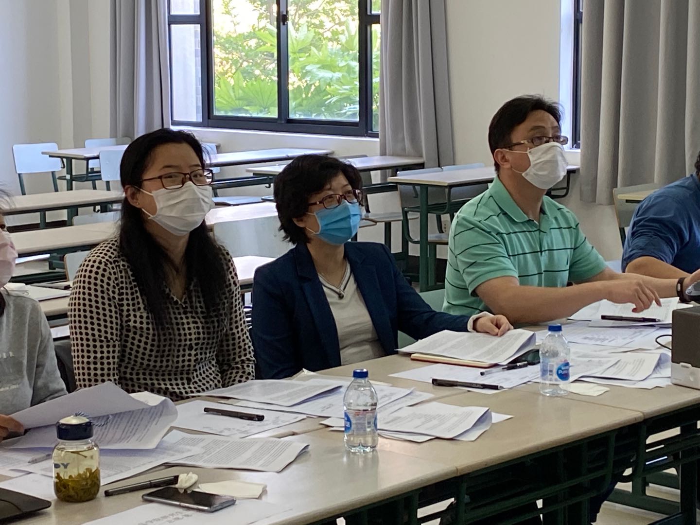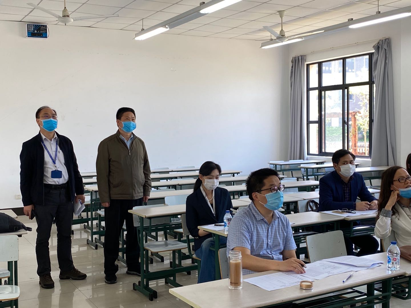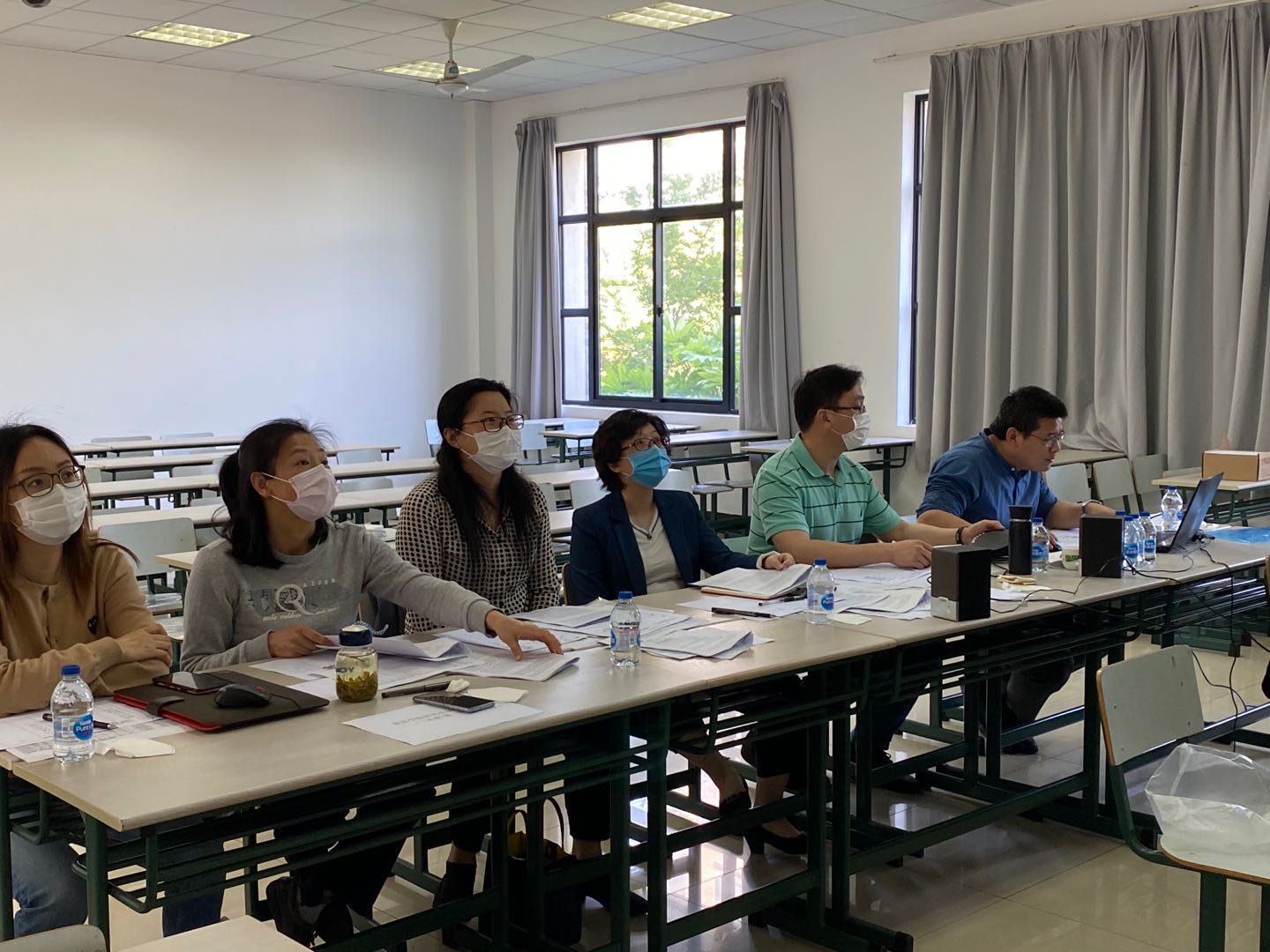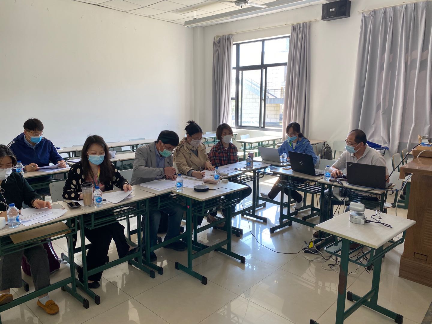 面对复试工作的新形势,学院教职工不畏困难,积极做好复试工作,共970余位教职工参与了此次复试工作,每个考场由5位导师考官、1名思政老师、1名复试操作人员兼答辩秘书和1名复试记录员组成。在做好复试工作的同时,积极做好防疫工作,通过复试前考场清洁并给每位老师配备防疫物资等多项举措确保复试工作的安全和顺利进行。同时,复试前,对操作员、记录员进行了专门的培训,提前完成设备调试工作,答辩秘书事先组织了面试英语和专业试题库,确保复试过程的顺利进行。