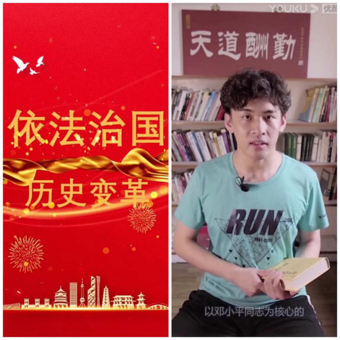 第五部分主题为“纵观历史长河、守初心担使命”,外联部的宋雨青和胡璇美燕两位同学从法治角度剖析在历史变迁中,国家是如何以法治思维处理党和国家大事,以法治思维不断推进社会主义现代化建设,以此逐渐实现中华民族伟大复兴的中国梦,并呼吁大家不忘初心,牢记使命,发挥出青年独有的磅礴力量为祖国添砖加瓦。
