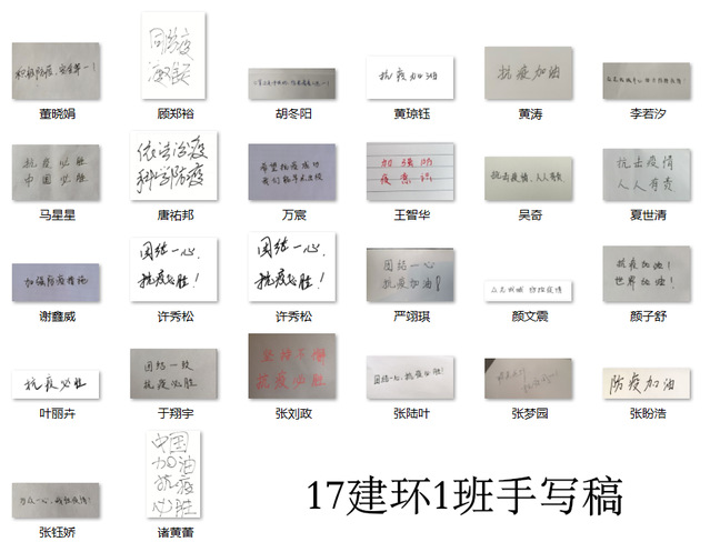 各团支部从 “致敬一线工作者”、“大学生如何积极防疫”、“团结一心共战‘疫’”等方面切入,正确认识新冠肺炎, 积极关注疫情动态,坚定抗击疫情信心。在每日健康打卡中,全体团支部形成了“日上报、零上报”的上报体系。17建环1班团支部成员开展了“同心抗‘疫’”发声活动,在纸上留下了最坚定的“声音”,全体团支部成员们增强了战胜疫情的信心,用科学理性的方式进行疫情防控的宣传,表达大家同心抗“疫”的态度。