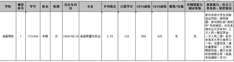 根据教务处文件《2021年东京海洋大学留学项目(JCK项目)申请通知》和《Kaiyun官方网站登录入口学生出国(境)交流学习工作实施办法(试行)》的要求,经个人申请,食品学院审议,现将食品学院2021年东京海洋大学留学项目(JCK项目)申请名单公示后上报教务处,特此公示。公示时间2020年12月21日—2020年12月23日。
