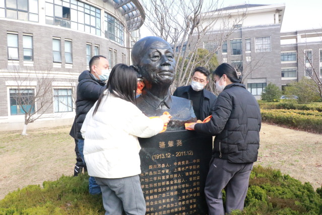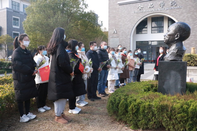 活动开始前全体师生对骆肇荛老院长鞠躬致敬,接着由师生代表为骆肇荛铜像除尘,清理周围环境。在场师生们认真地擦拭铜像,用点点滴滴的真情深切缅怀骆肇荛老院长,用不忘食品人初心的行动告慰先辈们。最后,师生代表们依次向骆肇荛老院长敬奉鲜花,以表追思。