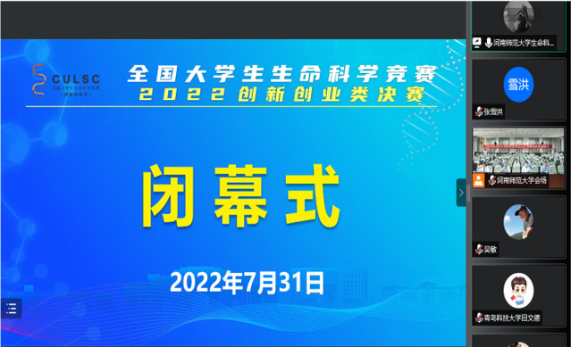 7月31日,由全国大学生生命科学竞赛委员会、高等学校国家级实验教学示范中心联席会及《高校生物学教学研究(电子版)》杂志社主办,河南师范大学生命科学学院承办,竞赛组织委员会组织实施的全国大学生生命科学竞赛(2022,创新创业类)正式落幕。在我校前期选送的42件作品中,共有7件作品入围大赛决赛,其中创新类作品“不同酶对生物被膜形成和贻贝附着的影响”特等奖,同时分别获得一等奖5项、二等奖5项、三等奖9项。此外,学校还获得此次大赛的“优秀组织奖”。