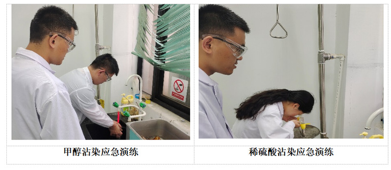 为加强学院相关专业学生的安全意识和应急处理能力,食品学院根据学校发布的关于开展2023年安全生产月活动的通知要求,于710食品检测实验室A408分别组织开展了甲醇沾染皮肤的急救处置稀硫酸溶液进入眼睛的急救处置实验室安全应急演练活动。