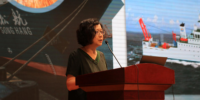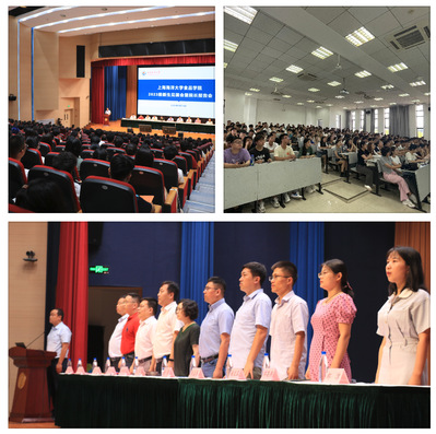 在庄严地齐唱国歌后,院长谢晶作院情院史专题报告。谢晶从学校高水平特色大学沿革缘起与学院基本概况两个维度全面系统地向新生介绍了校院专业设置、师资队伍、人才培养体系及就业情况等相关内容,让同学们在深入了解学科特色与优势、国家级实验教学示范中心建设、本研学生教育、教学科研支撑平台、优秀学生等信息的同时,厚植爱校荣校意识。谢晶勉励全体新生,新时代是奋斗者的时代,海洋大学是学习知识的殿堂、服务社会的庙堂、惬意生活的天堂,同学们要练就过硬的专业技能、注重多种能力的培养,实现人生价值和社会价值的统一。