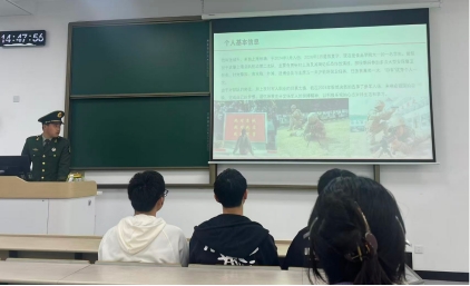宣讲会伊始,退役大学生士兵张诚升结合自身经历,他用真实的照片和真挚的语言,分享了战友间的情谊与完成任务后的自豪,坦言军营让他深刻理解了“责任”与“奉献”的含义。其生动的讲述赢得了现场阵阵掌声,让在场学子对军营生活有了直观且深刻的认识。
